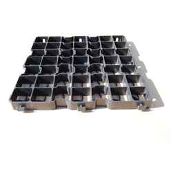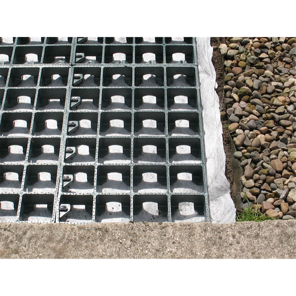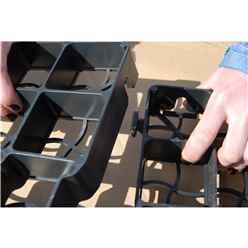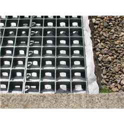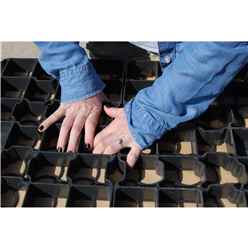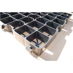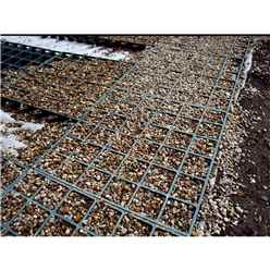 Made from UV stabilised 100% recycled plastic. Each grid is: 500mm x 500mm x 50mm. Weight: 1.8kg per grid. Crushability: 185 tonnes m2. Each grid holds approximately 16.5kg of 10mm pea gravel.