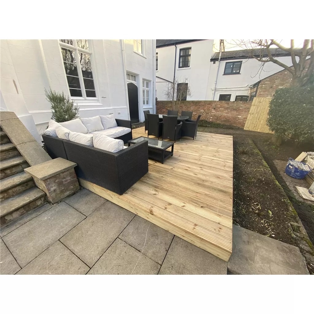 The Pressure Treated Decking Kit is an attractive and sturdy feature for any garden or patio. The pre-cut kit comes with thick sturdy 6 x 2 pressure treated joists, 32mm thick and 150mm wide deck timber boards (these are wider and thicker than most decking kits sold) - giving you a long lasting and stronger, robust decking finish.